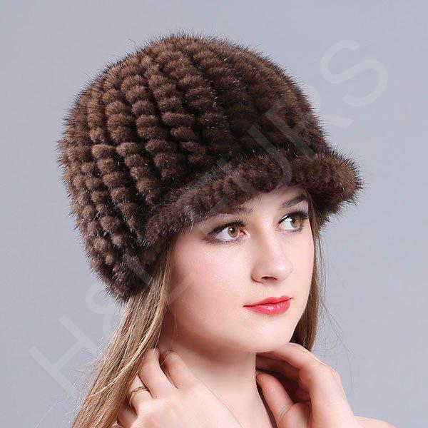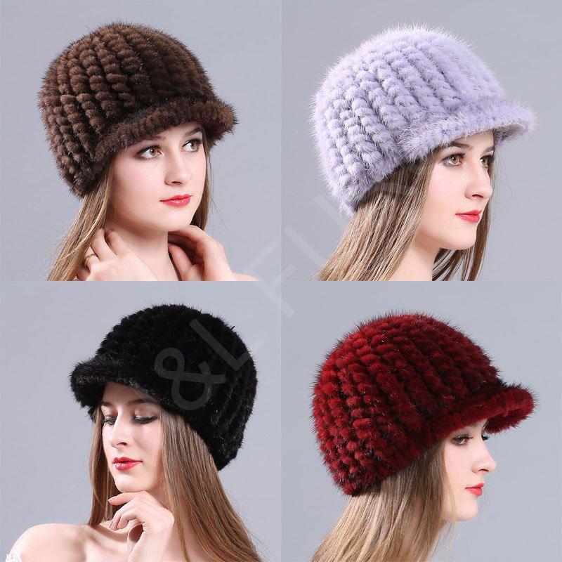 OEM Women Knitted 100% Rex Rabbit Fur Ball Cap Pom Poms Hat