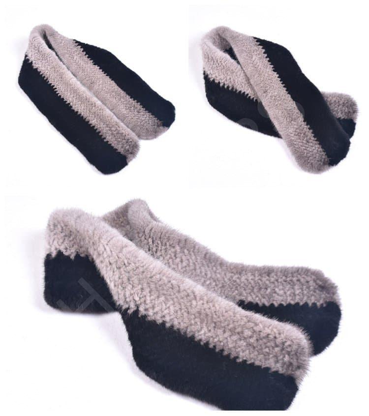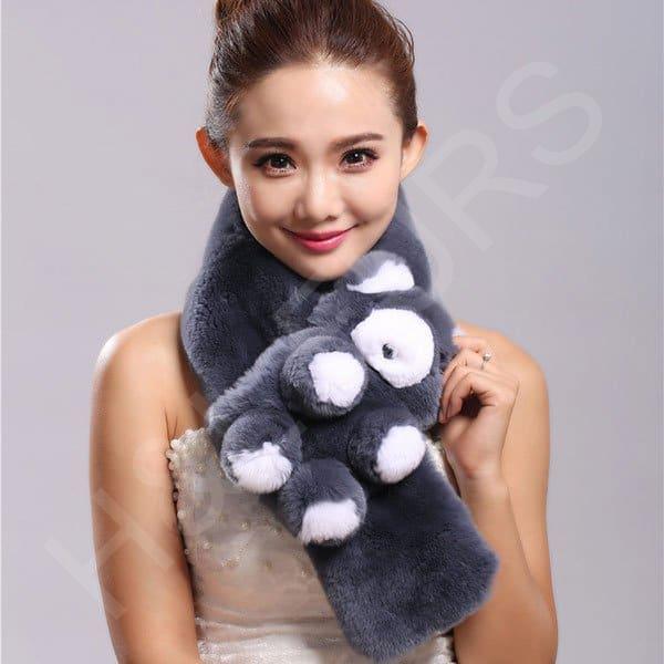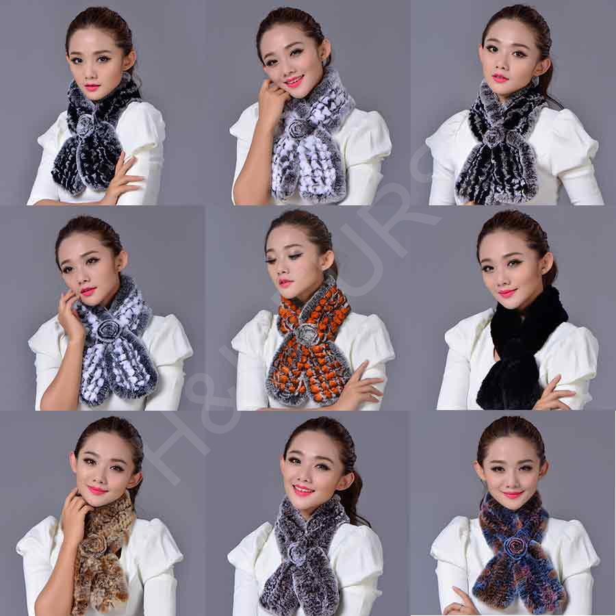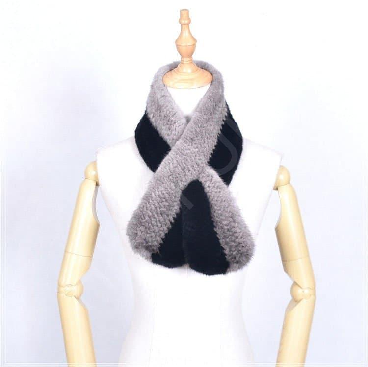 Rex Rabbit Fur Knit Scarf with Fox Fur Strip Decoration Wholesale