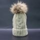 Polyester Knitted Toboggan Hat With Natural Raccoon Pompom