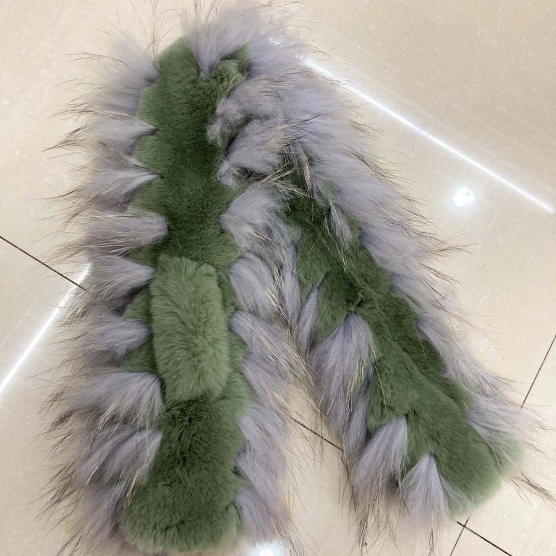 Good Quality Rex Rabbit Fur Scarf with Fox Trim Wholesale