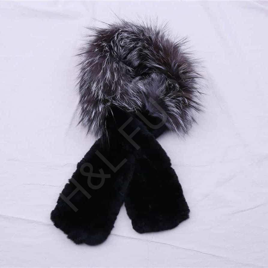 Rex Rabbit Fur Scarf with Stripe Decoration Wholesale