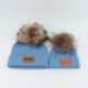 Kids and Adults Beanie Hats with Natural Raccoon Pompom