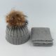 Soft Kids Beanie Hats with Natural Raccoon Pompom and Scarf