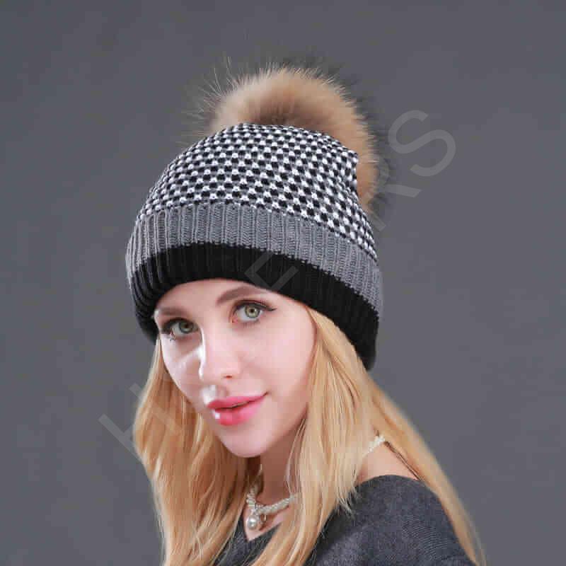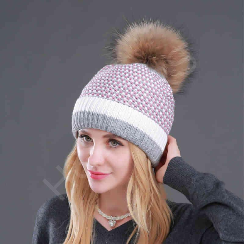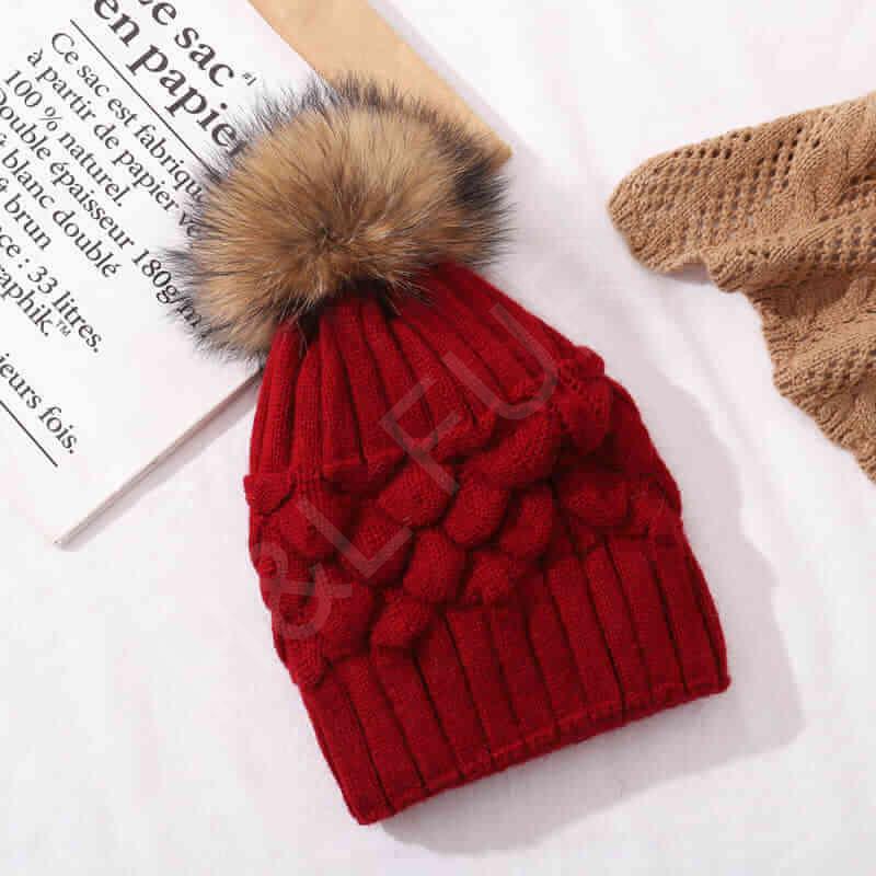 2019-03-27Factory Price Knit Winter Hat With Fur Raccoon Ball For Women