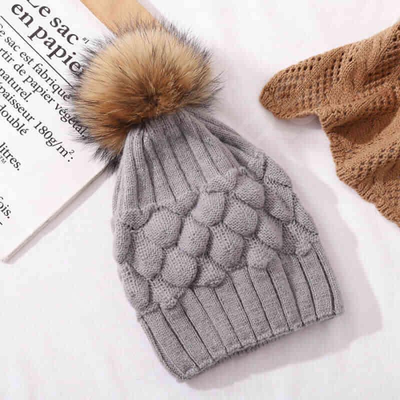 Product Name: Factory Price Knit Winter Hat With Fur Raccoon Ball For Women