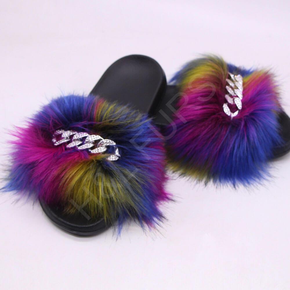 2021-04-20Fashion Fur Slides Faux Fox Fur Slippers with Rhinestone Decoration
