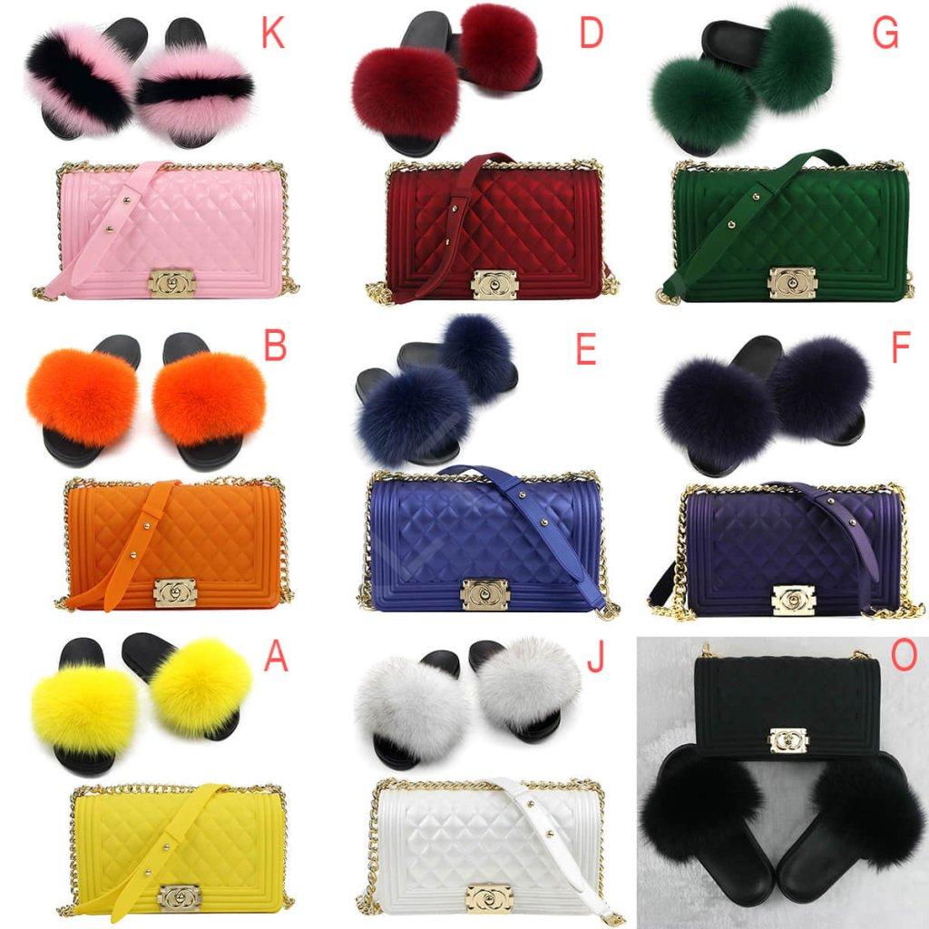 Fashion Fur Slides Faux Fox Fur Slippers with Rhinestone Decoration