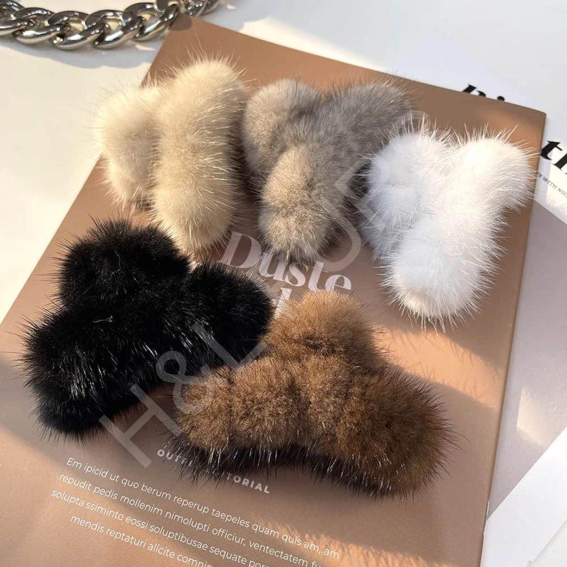 2024-07-01Flower Pattern Mink Fur Hair Claw Clip for Women