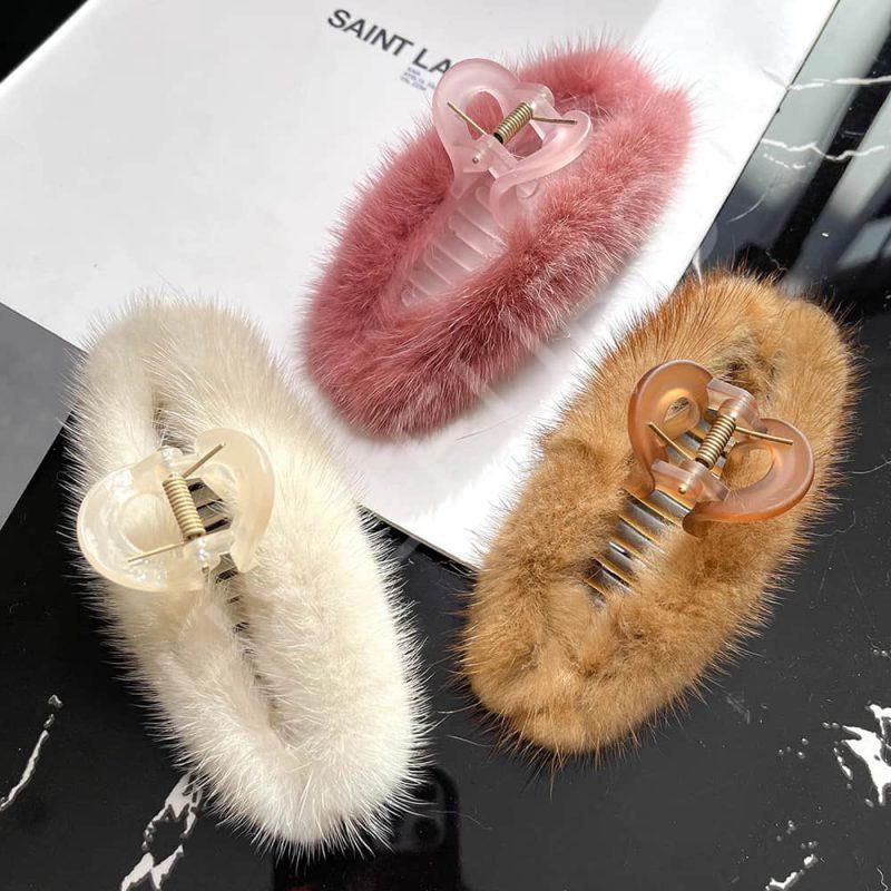 Product Name: Flower Pattern Mink Fur Hair Claw Clip for Women