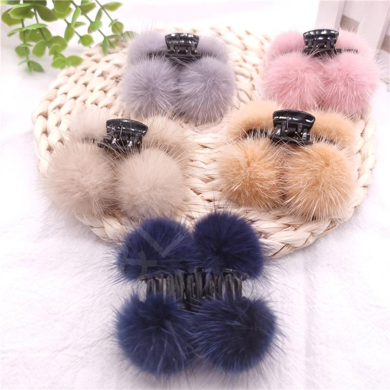 Product Name: Mink Fur Pom Pom Hair Clips Wholesale