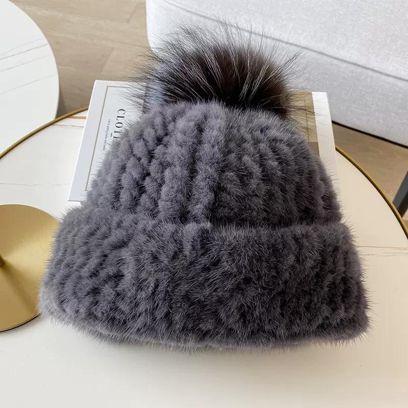 Mink strip knitted on yarns, and provides a seamless look and a warm and comfortable fit.