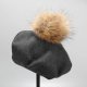Wool Knit Fur Beret Hat with Pompom Wholesale