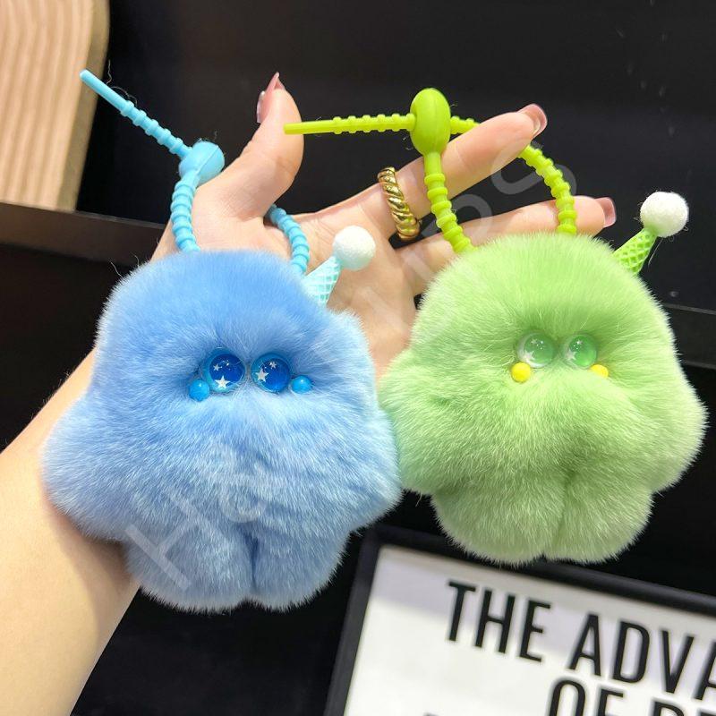 Rex Rabbit Fur Cute Starfish Keychain