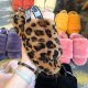 Shearling Lamb Fur Slippers with Elastic Strap Fluff Fur Slides Leopard Print UGG Slides