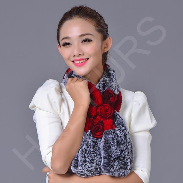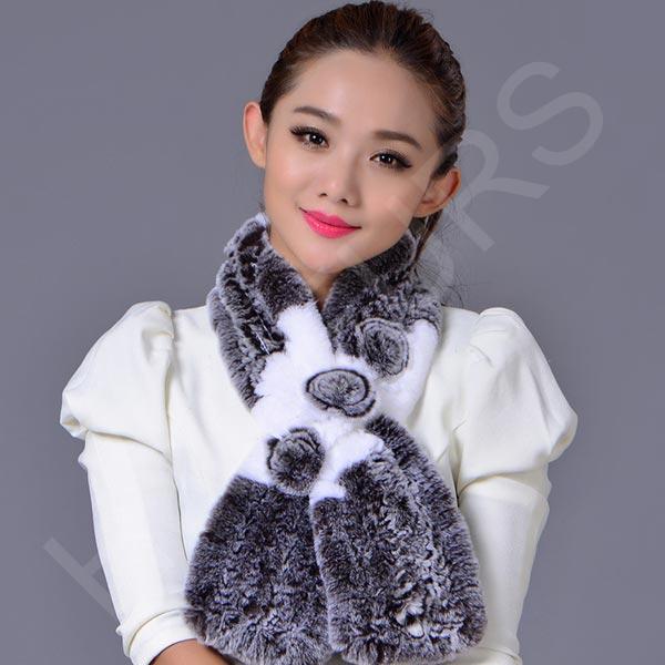 Rex Rabbit Knitted Scarf with Fox Pompom