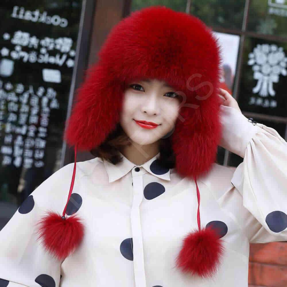 Fashion Knitted Hat with Fox Trim and Pompom Wholesale