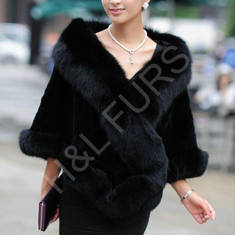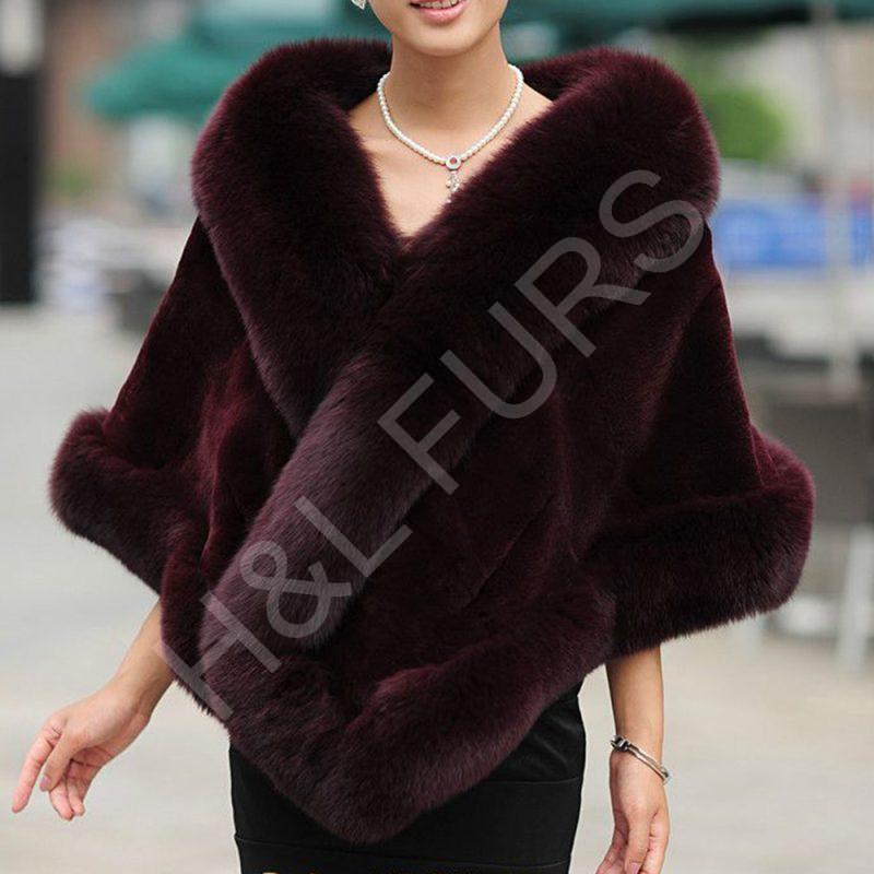 Rex Rabbit Fur Shawl with Fox Trim Wholesale